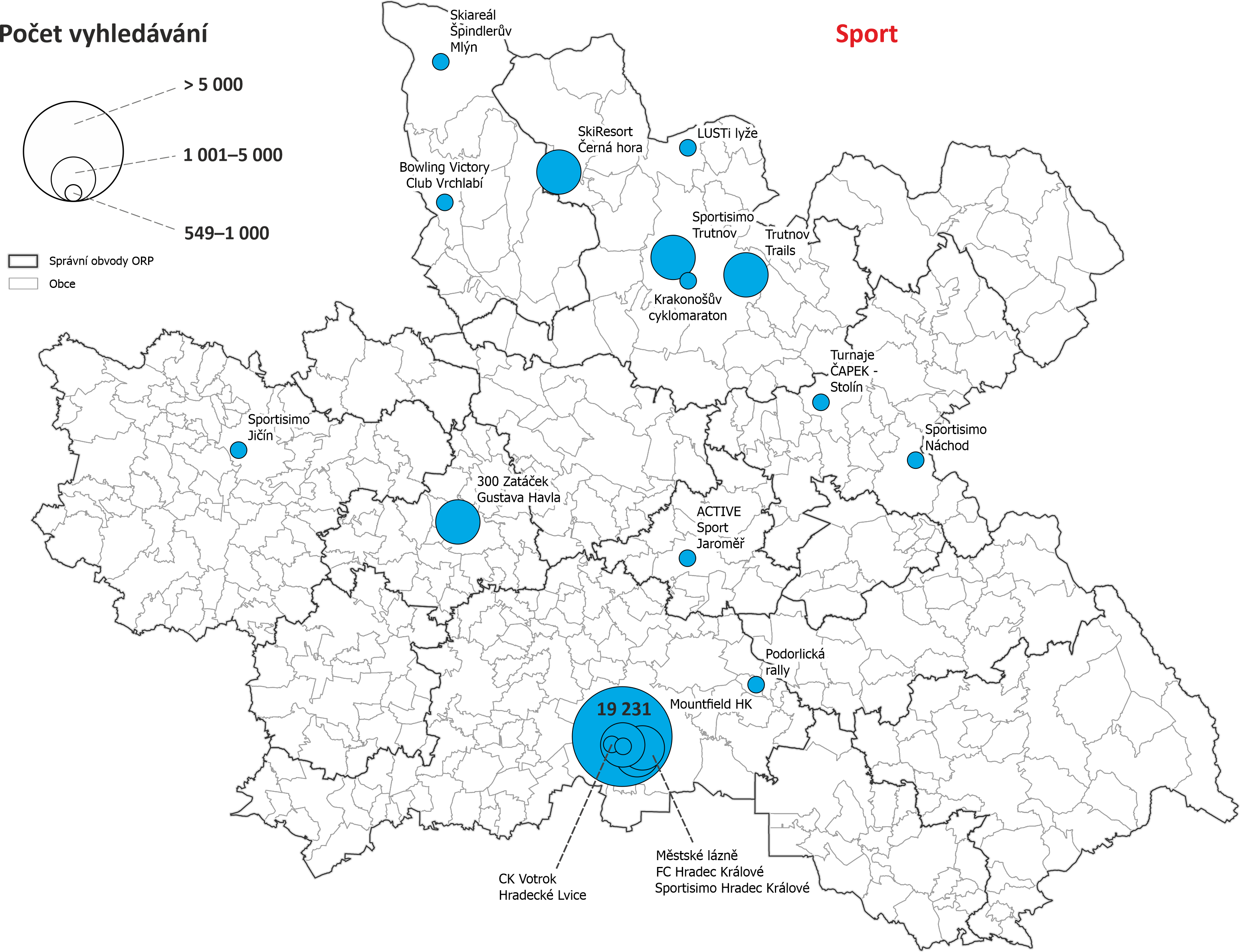- Geograficky zaměřené vyhledávání obsahují Hradec a jeho další modifikace je nejvíce zastoupeno v kategoriích Sport, Turismus a Instituce